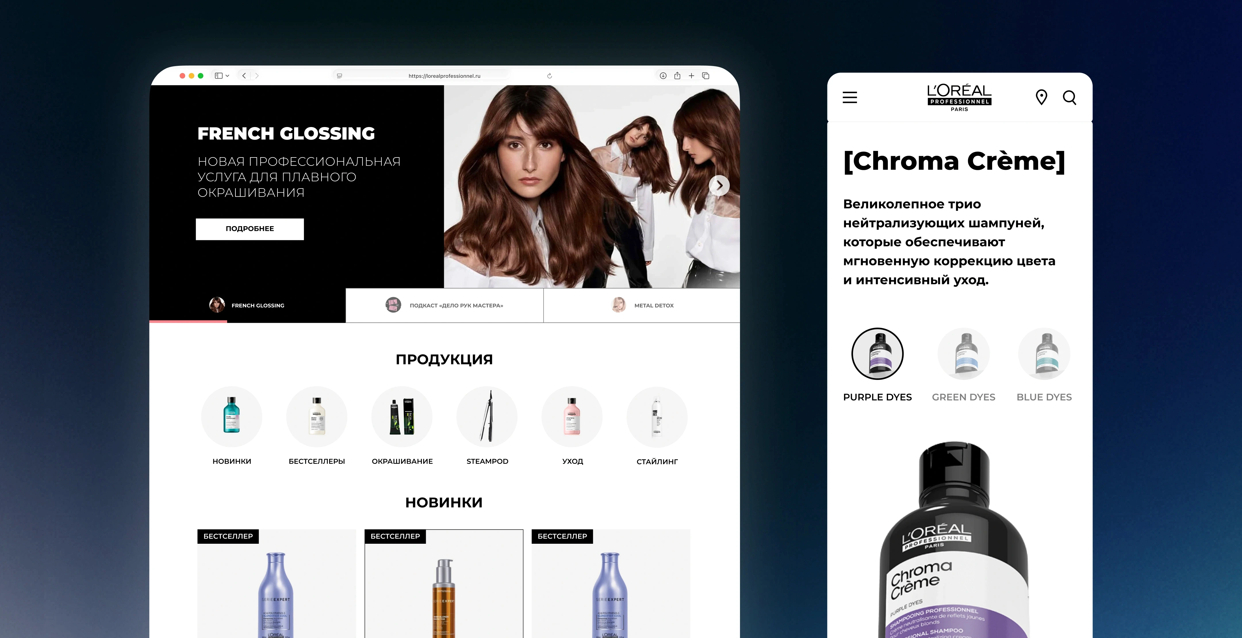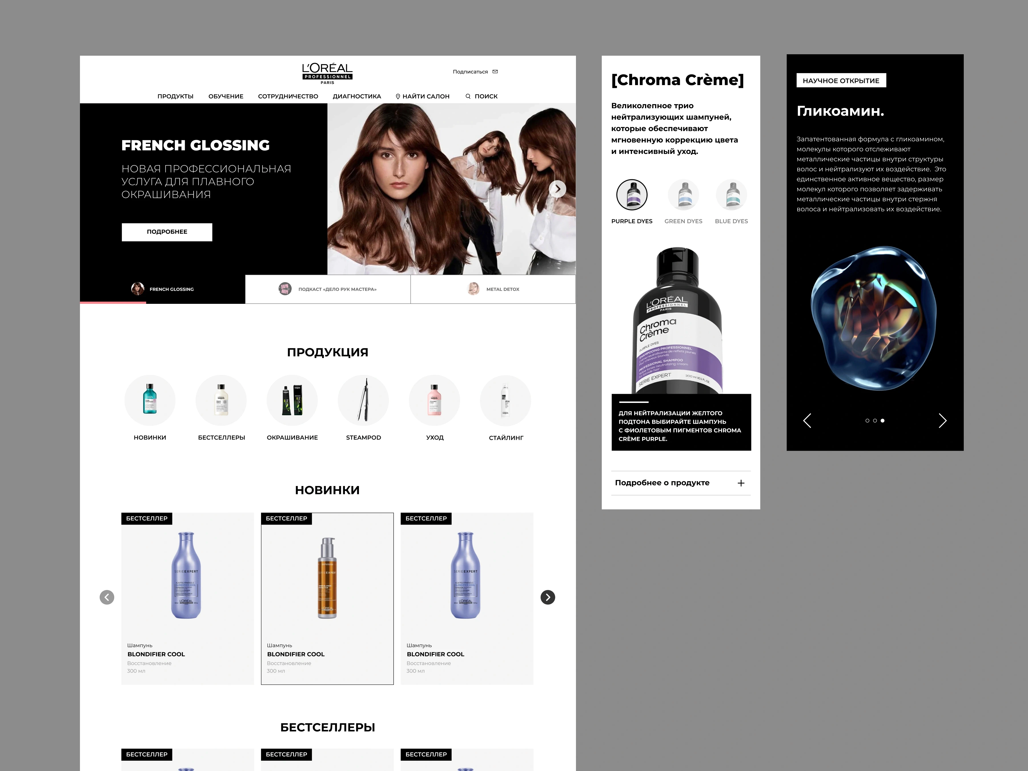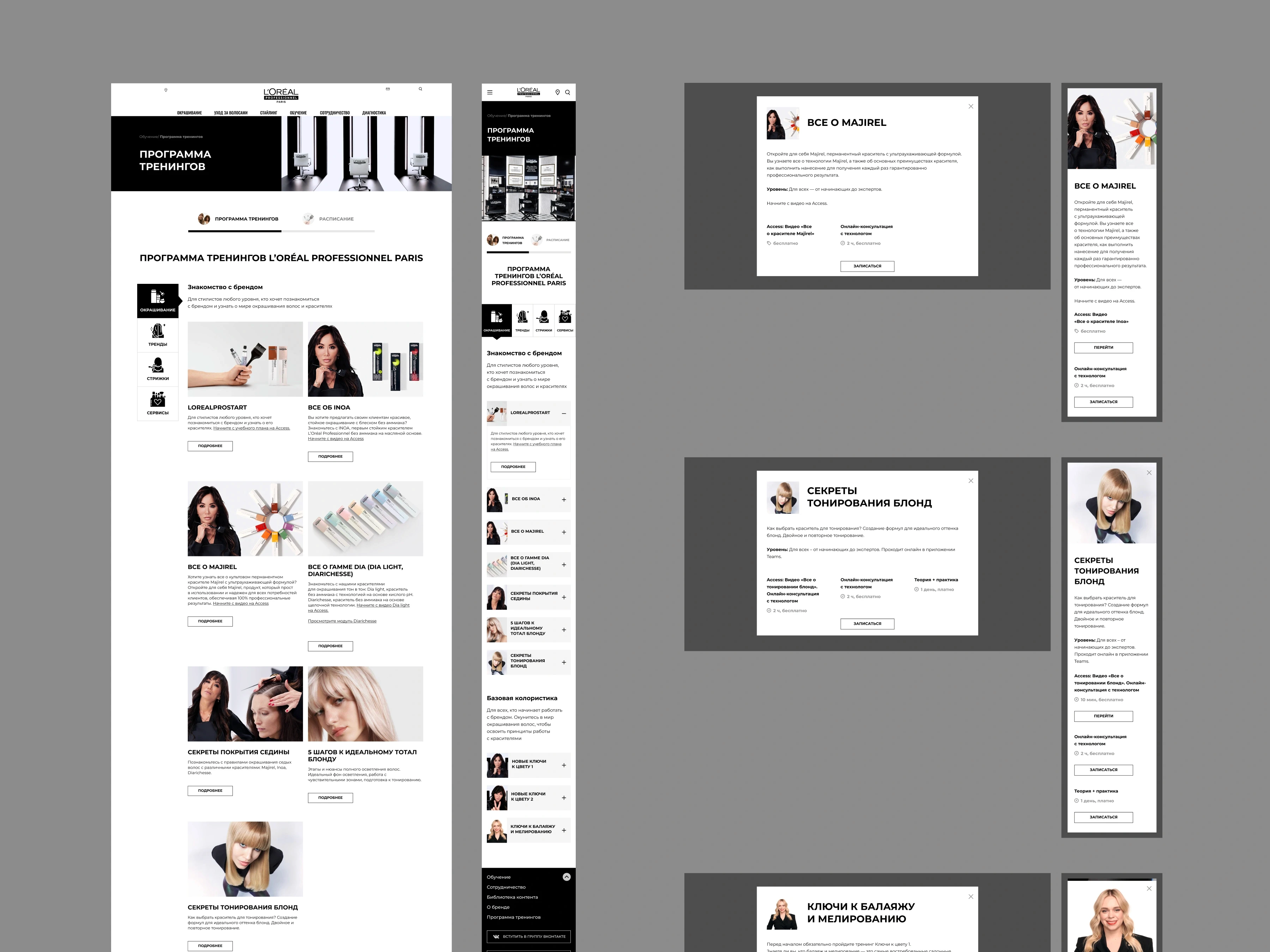 The main challenge was to unify several distinct brands under a single, cohesive digital experience while addressing the very different needs of two core audiences: retail customers looking for products and professional salon masters seeking education and B2B tools. I had to create a flexible system that could support high-traffic retail sales while providing a robust, functional environment for the «L’Oréal Academy» training programs.